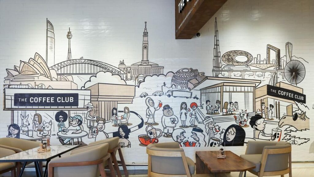 Daha serin sıcaklıklara sahip Oasis Mall’daki Coffee Club, Şeyh Zayed Yolu üzerinde açık havada mükemmel bir kahvaltı mekanı sunmaktadır. Dinlendirici bir açık hava ortamında taze demlenmiş kahvenin ve çeşitli kahvaltı klasiklerinin tadını çıkarabilirsiniz. Kafenin rahat iç mekanları, Emirlik sanatçısı Khaled Al Jaberi’nin Avustralya-BAE kültürel bağlarını kutlayan bir duvar resmine sahiptir. Bu 19. BAE konumu, Kahve Kulübünün Dubai ve Abu Dabi’deki artan varlığına katkıda bulunuyor. Bu hafta sonu aile toplantıları, arkadaş buluşmaları veya yalnız rahatlama için idealdir.