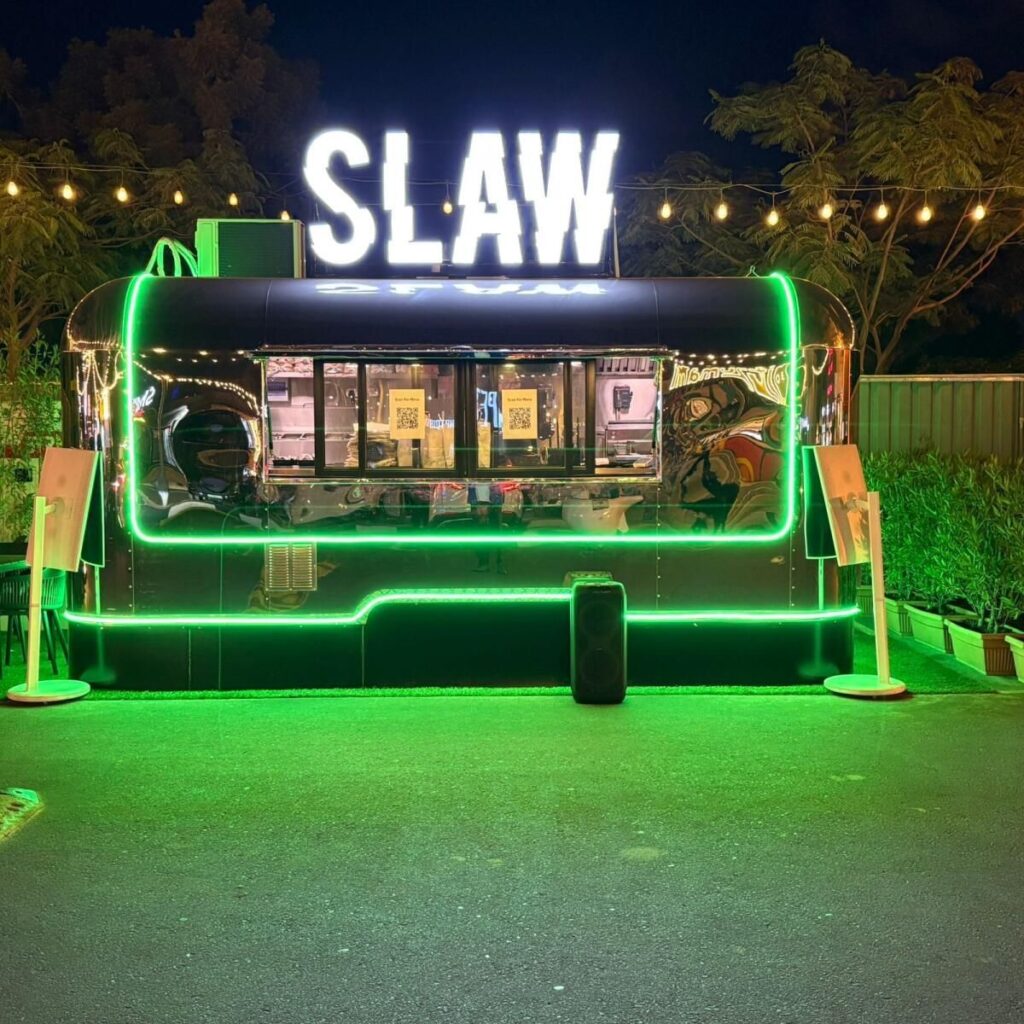 Slaw, Aswaaq Community Mall, Al Barsha South 1’de imza burgerlerini uygun bir mobil formatta sunan bir gıda kamyonu başlattı. Kamyon, hareket halindeyken lezzetli, kaliteli yemekler için müşteri talebini karşılayan bir burger, patates kızartması ve içecek içeren birleşik yemekler sunar. Gıda kamyonu günlük olarak sabah 10’dan sabah 2’ye kadar çalışır ve ortalama harcama 50-70 Dh’dir.