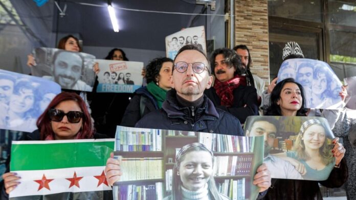 Kayıp aktivistlerin fotoğraflarını tutan göstericiler, Suriye’nin yeni yöneticilerini – geçen ay iktidarı ele geçiren İslamcı liderliğindeki isyancıları – kendilerine ne olduğunu araştırmaya çağırdılar.