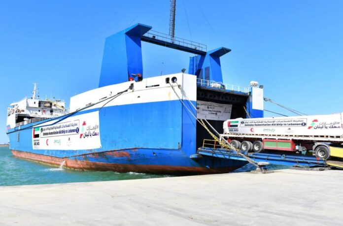 Bu ayın başlarında başlayan “BAE Lübnan’ın yanında” kampanyası kapsamında 2.000 ton acil malzeme yüklü bir BAE gemisi Cuma günü Beyrut Limanına indi.