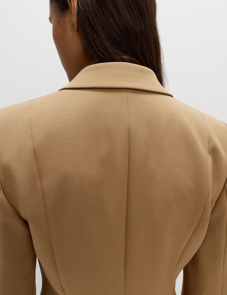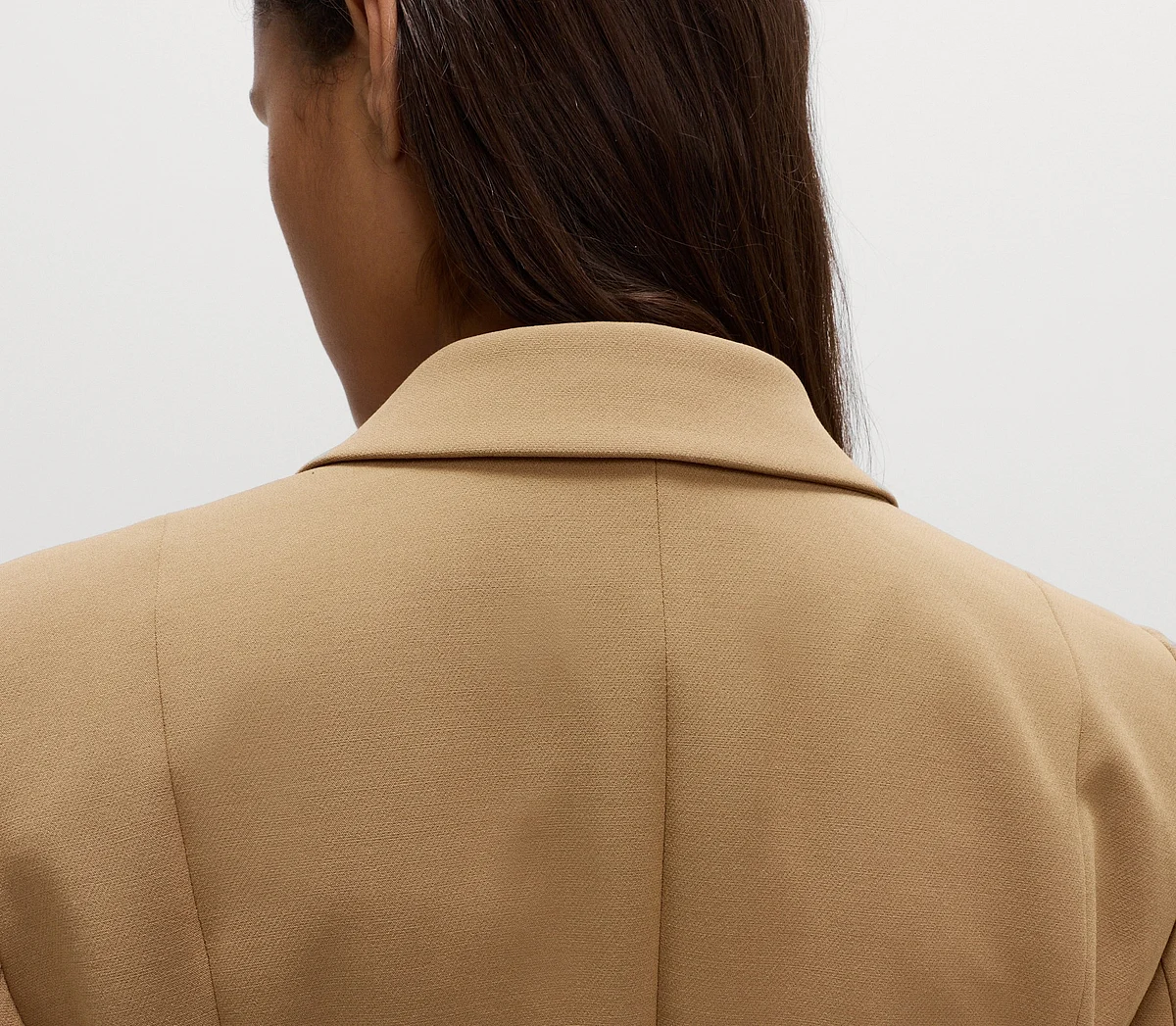 Büyük boy blazerlerin hepsi önden iyi ve güzel. Kolları sıvayın, belki bir louche Fransız tutacağı ekleyin ve şekil işe yarar. Ama gerçek bir Olsen ikizi değilseniz veya oyuncak bebek oranlarıyla doğmadığınız sürece, arkadan gurur duymuyorlar. M ‘S’in deve blazerindeki deha, önden kutulu bir blazerin güçlü omuz yumruğunu koruduğu, ancak arkada düzgün bir bele kadar couture benzeri bir hassasiyetle kıstırılmış olmasıdır. Tek, asimetrik düğme tutturma, gevşek ve louche veya kapılmış ve keskin arasında geçiş yapmanızı sağlar.