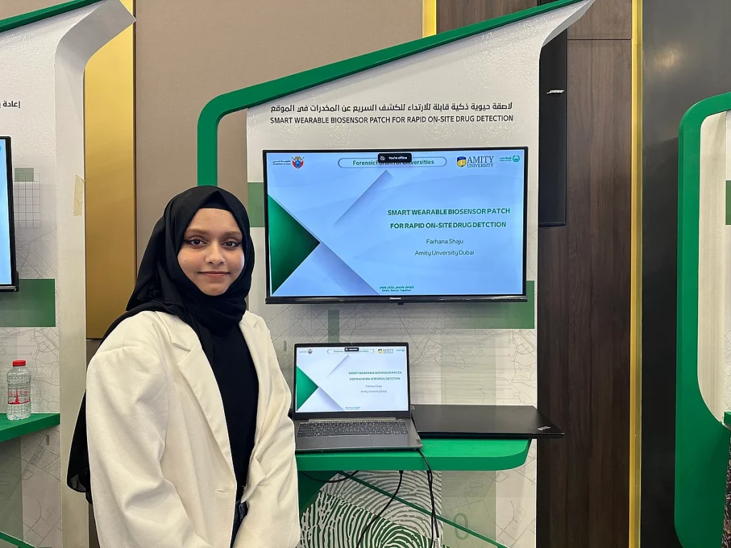 İlaç tespit yamaları h3> Bir diğer göze çarpan yenilik, hızlı, yerinde ilaç tespiti için Akıllı Giyilebilir bir Biyosensör Yaması sunan Amity Üniversitesi öğrencisi Farhana Shaju’dan geldi.