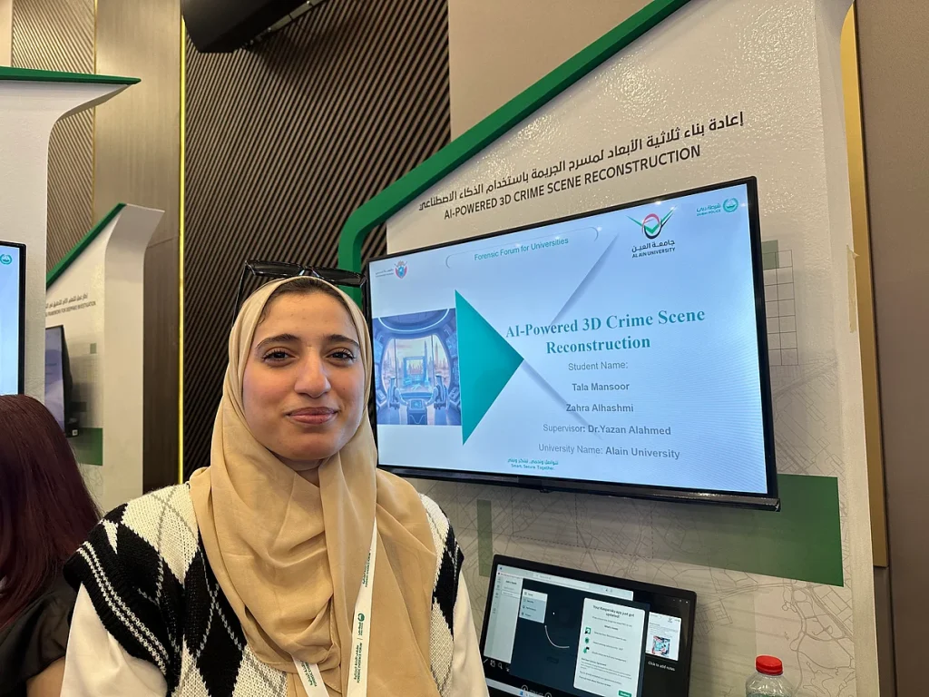 Al Ain Üniversitesi’nden ikinci bir ekip olan Tala Mansoor ve Zahra Alhashmi, yapay zeka Destekli bir 3D Suç Mahalli Yeniden Yapılanma projesi üzerinde çalışarak, modern adli tıpta gelişmiş dijital belgelere odaklanmayı daha da vurguladı.