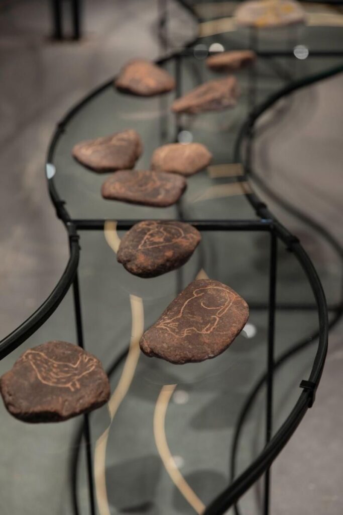 Sergi, Al Saadi’nin on yıllar boyunca üstlendiği sekiz farklı seferi anlatıyor. Onlara böyle bütünsel bir şekilde bakıldığında, sanatçının hikayelerini benzersiz bir bakış açısıyla aktardığı, genellikle yolculuklarında kendisine eşlik eden hayvanlara ve nesnelere ses verdiği hissedilir. Her anlatı birkaç bölüm içerir ve bienal haznelerine Al Saadi’nin sanatsal pratiğine dair sürükleyici, sürekli gelişen bir deneyim kazandıran başka bir kıvrımlı dönüşe yol açar.“1992’de dünyayı bisikletle gezmek gibi bir hayalim vardı ama bunu başaramadım, bu yüzden ‘Hafıza Alanları, Hafıza Kaybı Alanları’ aracılığıyla vahşi doğada yaptığım yolculukları bisikletle sergilemeye karar verdim. ya da sadece seyahat arkadaşı olarak hayvanlarla yürümek ve sık sık yürümek. Bütün bunlar, BAE’nin kırsalına, doğasına, insanlarına ve peyzajına olan derin bağlılığımdan ve sevgimden ilham aldı “diyor Al Saadi., onunla Venedik’teki soğuk bir Nisan sabahı gösterisinin basın önizlemesinde tanıştığımızda. Sergilenen çok sayıda parça, gerçekten de palmiye ağaçlarıyla çevrili bir vaha gibi görünen yolda gezinen bir bisiklete sahip. Tasavvufun Bisikletle Yolculuğu, sanatçı tarafından çocuksu bir zevkle işlenmiş kalem çizimlerinden oluşan bir koleksiyondur. “Bu çalışmaları ilk kez Pakistan’daki bir bienalde gösterdim. Benim için Tasavvuf fikirleri önemlidir çünkü insanlığın birliğinden bahsederler “diye düşünüyor.Sufi’nin Bisikletle Yolculuğu esas olarak El Saadi’nin hayatı boyunca özenle sürdürdüğü günlüklerinden türetilmiştir. Eserler aynı zamanda yaşam boyu yazıya olan hayranlığını, özellikle de Tasavvuf ve Arap şiirine olan hayranlığını yansıtıyor. Özellikle, bu istisnai çizimler, toplamayı sevdiği atılmış teneke kutularda dikkatlice saklandı. Terliğin Yolculuğunda, yol haritalarını ve patikaları kaydetmek için 85 küçük boyutlu taş ve kaya kullanıyor. Al Saadi, günlüklerinin “geniş bir anı kütüphanesi” gibi olduğunu itiraf ediyor.” Günlük tutmak onun için günlük bir ritüeldir ve bildirildiğine göre tüm metal kutularını titizlikle etiketliyor ve mühürlüyor.