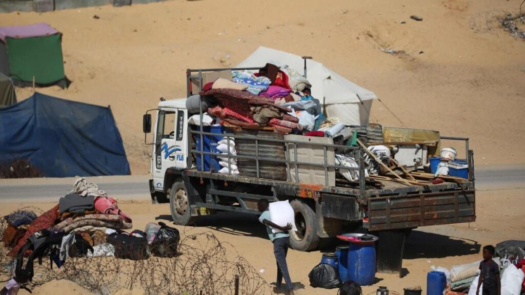 Yerlerinden edilmiş Filistinliler Refah’ta daha güvenli bir bölgeye kaçarken eşyalarını bir kamyonun arkasında topluyorlar. — Fotoğraf: AFPSalı günü İsrail, Refah’ın yardım için ana giriş noktası olan Mısır’a sınır kapısını ele geçirdi.Beyaz Saray yardımın aksamasını kınadı ve savunma bakanı daha sonra Washington’un bomba sevkiyatını durdurduğunu doğruladı.İsrail’in Biden’in tehdidine ilk tepkisinde BM büyükelçisi Gilad Erdan bunu “çok hayal kırıklığı yaratan bir açıklama” olarak nitelendirdi.“İsrail’in, Hamas’ın binlerce teröristi, rehinesi ve liderinin bulunduğu Refah kadar önemli ve merkezi bir bölgeye girmesi kısıtlanırsa, hedeflerimize tam olarak nasıl ulaşmamız gerekiyor?” halk radyosunda söyledi.İsrail ordusu Çarşamba günü yaptığı açıklamada, Gazze’ye bir başka yardım kapısı olan Kerem Şalom’un yanı sıra kuzey Gazze’ye geçen Erez’i yeniden açtığını söyledi.Ancak, Dünya Gıda Programı şefine göre kıtlığın çoktan başladığı bölgeye yardımın girip girmediği belli değildi.UNRWA, İsrail’in Pazar günü dört askerin ölümüne neden olan bir roket saldırısının ardından kapattığı Kerem Şalom geçidinin kapalı kaldığını söyledi.Çarşamba günü geç saatlerde ordu, roketler Kerem Şalom’u tekrar hedef aldığında bir askerin hafif yaralandığını söyledi.Hamas yetkililerinin Refah’taki “acil durum komitesi” Perşembe günü yaptığı açıklamada, İsrail’in “Refah geçişinin kontrolü ve kapatılmasının yanı sıra yardım ve yakıt kaynaklarının durdurulmasının insani, çevresel ve sağlık felaketini şiddetlendirmekle tehdit ettiğini” söyledi.İsrail’in Refah operasyonunu “sınırlı” olarak tanımlamasını “yalandan başka bir şey” olarak reddetti.Kıbrıs hükümeti, Gazze’ye yardım yüklü bir ABD konteyner gemisinin kuşatılmış Filistin topraklarına yardım almak için yeni bir deniz koridoru testinde Perşembe günü Kıbrıs’tan ayrıldığını söyledi.