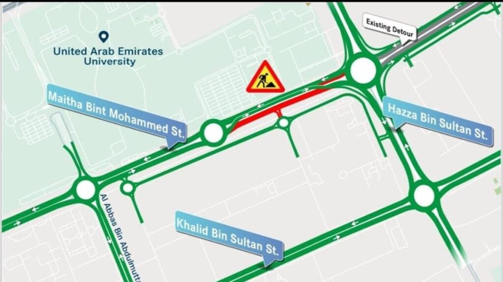 Fotoğraf: REKLAM Hareketliliği/ XDaha önce, otorite, her iki yönde de iki sol şeritte Maitha bint Muhammed Caddesi’nde kısmi bir kapanma olduğunu duyurdu.Şeyh Zayed Bin Sultan Yolu (E10) üzerindeki üç sağ şeridin Abu Dabi’ye doğru kapatıldığı da açıklandı. Bu, 17 Mayıs 10’dan 20 Mayıs 6’ya kadar gerçekleşecek.
