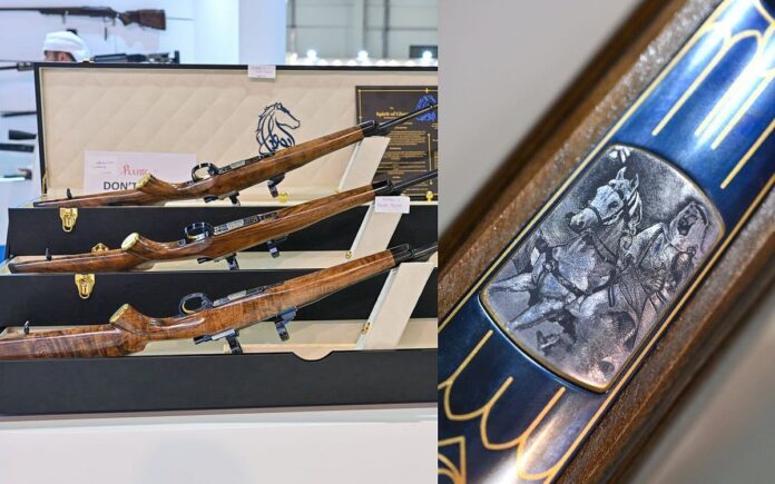 BAE’nin Kurucu Babası babası ve en sevdikleri Rabdan atının mirasına saygı duruşunda bulunan Abu Dabi Uluslararası Avcılık ve Binicilik Fuarı’nda (ADIHEX) değeri 4 milyon Dh olan lüks bir tüfek seti tanıtıldı.