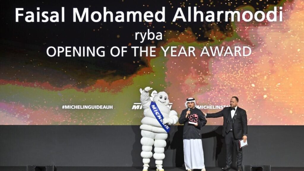 Nicolas Isnard, Broadway ve Em Sherif Sea Café tarafından Abu Dabi Michelin Rehberi 2025 — Bord’o’ya ilk kez üç restoran eklendi.Perşembe gecesi Abu Dabi’nin yeni Çarşısı Mina’da yerde oturan rahat bir lokanta iki Michelin ödülü aldı. Yeni seçilen bir restoran olan Ryba’ya Michelin yıldızı verildi ve ‘Yılın Açılışı’ kategorisinin galibi seçildi.Kurucusu Faysal Alharmoodi, kandoura’sının üzerine Michelin şef paltosunu giydi ve mutlulukla parıldayan sahneye koştu.“Ben bir Emirlik şefiyim, kültürümü ve annemin yemeklerini dünyaya getirmeye çalışıyorum; Emirlik yemeklerinin dünyayı dolaşabileceğini söylemek istiyorum, bu yüzden emirlik dokunuşuyla yüksek kaliteli malzemeler getirmeye çalışıyorum; Emirlik yemeklerini dünya çapında görmeyi umuyorum.”
