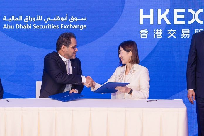 Ortadoğu’nun en hızlı büyüyen ve önde gelen borsalarından biri olan Abu Dabi Menkul Kıymetler Borsası (ADX) Perşembe günü Hong Kong Borsaları ve Takas Limited Şirketi (HKEX) ile işbirliğini ve ortak tutkuyu derinleştirmek için bir Mutabakat Zaptı (Mutabakat Zaptı) imzaladı.