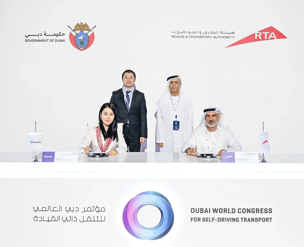 Toplu Taşıma Acentesi CEO’su Ahmed Haşim Bahrozyan tarafından RTA adına imzalandılar; WeRide ve Deutsche Bahn konsorsiyumu adına WeRide finans Direktörü ve Uluslararası İlişkiler Başkanı Bayan Jennifer Li tarafından; ve Zelos Technology adına BAE Genel Müdürü Wang Yongbo tarafından.