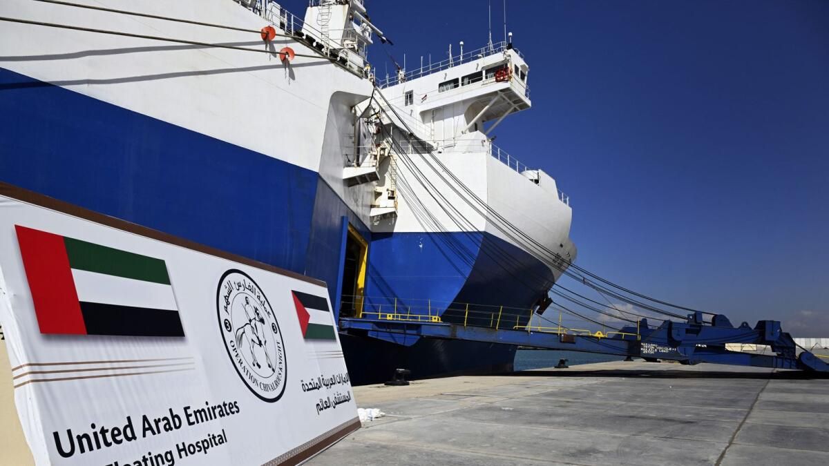 BAE Yüzen Hastanesi, 23 Şubat’ta Filistin halkına sağlık hizmeti vermeye başladı. Çeşitli spesiyalitelerden bir Emirlik sağlık ekibi tarafından denetlenir ve 100 yatak kapasitesinin yanı sıra hasta arkadaşları için ek 100 yatak kapasitesine sahiptir.