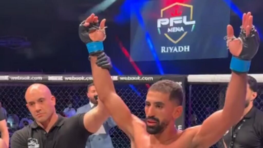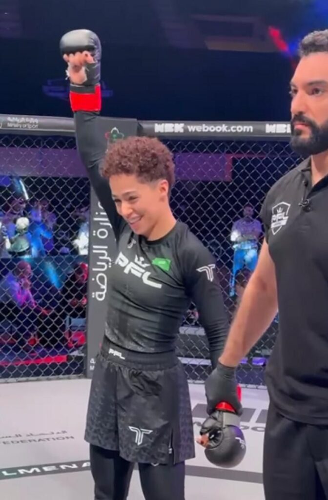 Suudi Arabistanlı Hattan Alsaif, bir Kadın Siklet amatör vitrin maçında mma’daki ilk çıkışını kazandıktan sonra kutluyor. – İnstagramFaslı Rachid El Hazoume boyun eğme becerilerini gösterdi ve taşralı Xavier Alaoui’yi ikinci turda arkadan çıplak boğucu bir boyun eğmeye zorladı. Sonuç olarak El Hazoume, Yarı Siklet yarı finallerine yükselir ve kariyerinde 14-3’e yükselir.Mısırlı İslam Reda, Faslı Adam Meskini’yi Tüy Siklet yarı finallerine yükselme konusunda oybirliğiyle aldığı kararla yenerken güçlü bir performans sergiledi. Galibiyet, Reda’nın üst üste beşinci oldu ve kariyer rekorunu 11-1’e yükseltti.Ürdün’den Celal El Daaja, Sudanlı Tarık İsmail’i Ağır Siklet maçlarında çoğunluk beraberliği ile geride bıraktıktan sonra PFL MENA Playofflarına biletini yumrukladı. Zafer, Al Daaja’nın kariyer rekorunu 12-7’ye yükseltti.