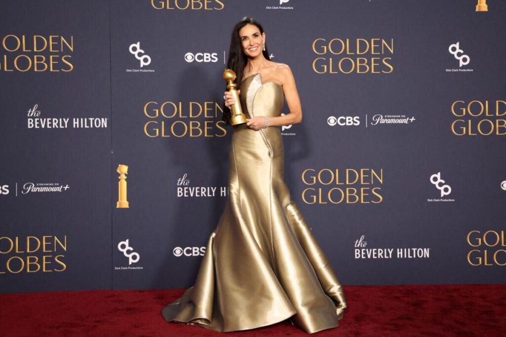 Fotoğraf: ReutersBeverly Hills’deki kırmızı halı töreninde Demi Moore, gençlik çeşmesi arayan solmakta olan bir aktrisin hikayesi olan “The Substance” filmindeki başrolüyle müzikal veya komedi filminde en iyi kadın oyuncu ödülünü kazandı.“St. Elmo’nun Ateşi” ve “Hayalet” gibi filmlerle tanınan Moore, kupasını sahnede tutarken “Şu anda şoktayım” dedi. “Bunu uzun zamandır yapıyorum, 45 yılı aşkın süredir. Oyuncu olarak ilk defa bir şey kazanıyorum.”