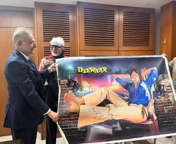 Tuval resmi, Dhanak tarafından şahsen toplantıya taşındı — filme ve temsil ettiği döneme olan hayranlığını yansıtan düşünceli bir jest. Bachchan, tabloyu değerli bir hatıraya dönüştürerek nezaketle imzaladı.