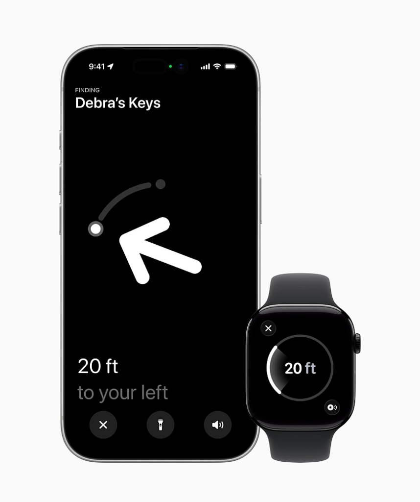 Hassas Bulma ilk kez doğrudan Apple Watch’ta kullanılabilir. Apple Watch Series 9 veya sonraki bir sürümü veya Apple Watch Ultra 2 veya sonraki bir sürümü olan kullanıcılar artık Airtag’lerini doğrudan bileğinden bulabilir – iPhone’u çıkarmaya gerek yoktur.