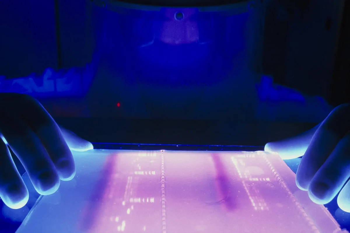 Bilgisayar çağından önce biyologlar, genlerimizi yöneten kuralları ortaya çıkarmak için özenli deneyler yaptılar. Genlerin baz adı verilen dört harfli bir genetik alfabede yazıldığını keşfettiler. Bir protein yapmak için, bir hücre, binlerce baz uzunluğunda çalışabilen bir gendeki diziyi okur.