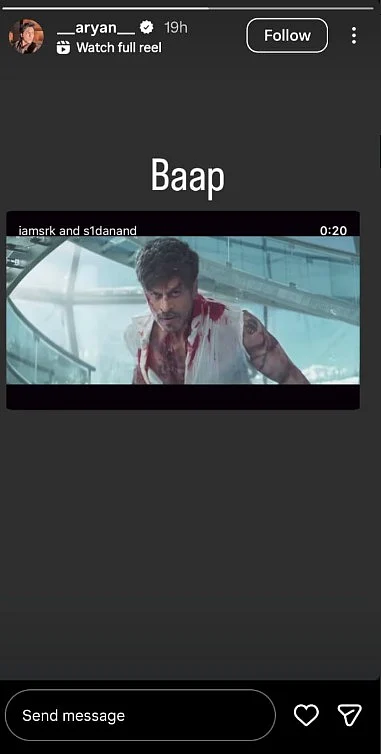 Yapımcılar King için tarih duyuru videosunu paylaştıktan kısa bir süre sonra Aryan, babasının güçlü yeni görünümüne tepki vermek için İnstagram. Videoyu İnstagram Hikayesinde yeniden paylaştı ve “ Baap (Hintçe’de baba)” yazdı.