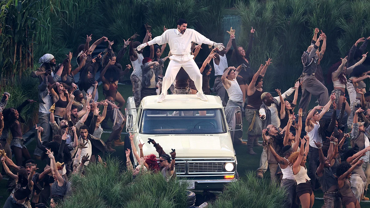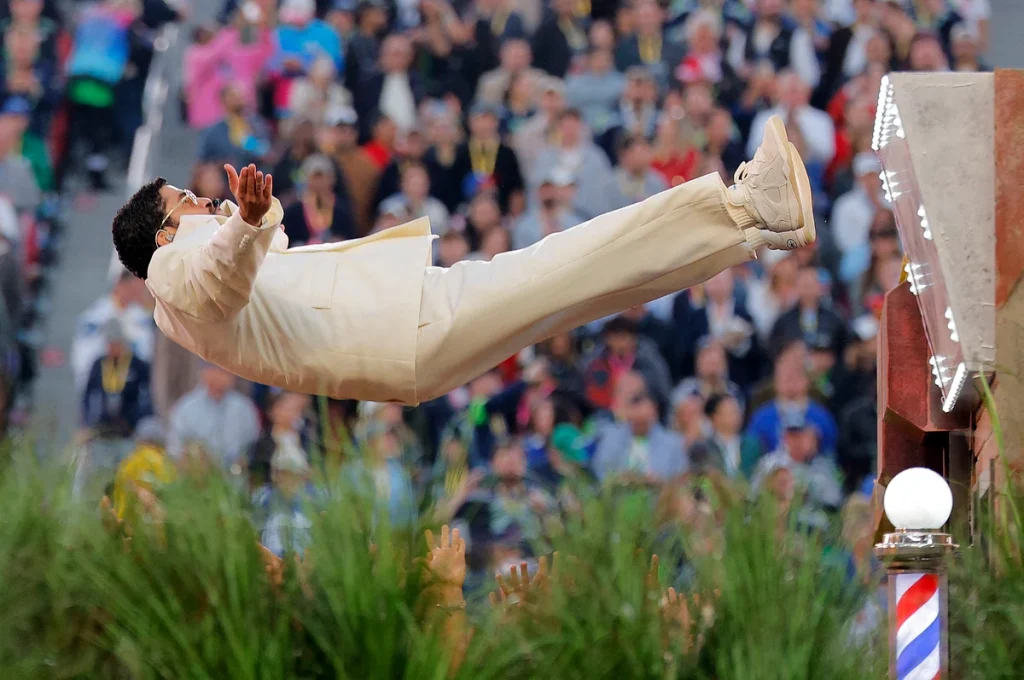Super Bowl devre arası performansından yeni çıkan küresel müzik yıldızı Bad Bunny, gecenin en çok konuşulan moda anlarından birini Bae’ye getirdi.