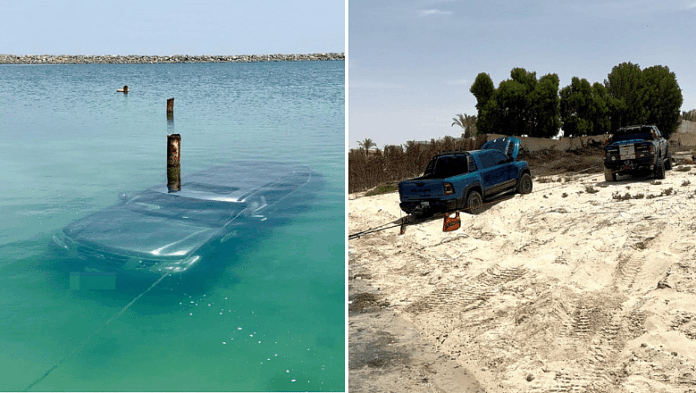 Pazar sabahı Ghantoot’ta kıyıda kamp kurmaya karar veren Hintli bir aile bir sürprizle uyandı. Arabaları suya yarı batmıştı – onlar uyurken gelgit yükselmişti ve kıyıya çok yakın park etmişlerdi.