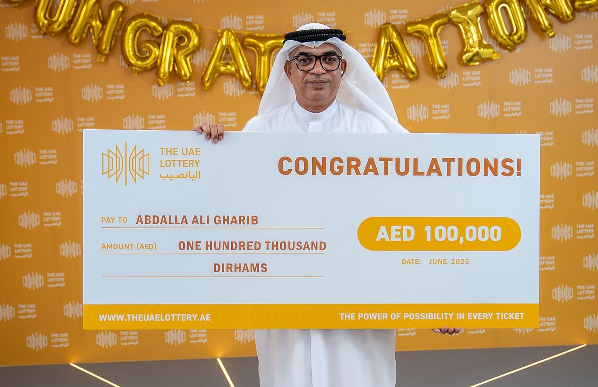 Son beş aydır, Abdalla Ali Gharib haftada iki kez BAE Piyangosu oynuyor ve 100 Dh’ye kadar para harcıyor. Bu yılın haziran ayında, BAE vatandaşı 100.000 Dh’yi kazanarak altın madalya kazandı.