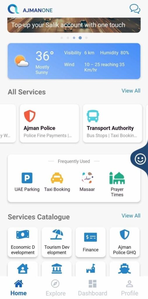 Trafik cezalarınızı AjmanOne uygulaması üzerinden de ödeyebilirsiniz. Sadece şu basit adımları izleyin:Uygulamayı telefonunuza yükleyin, BAE Geçişinizi kullanarak uygulamaya giriş yapın, Gösterge tablosunda ‘Ajman Polisine’ dokunun