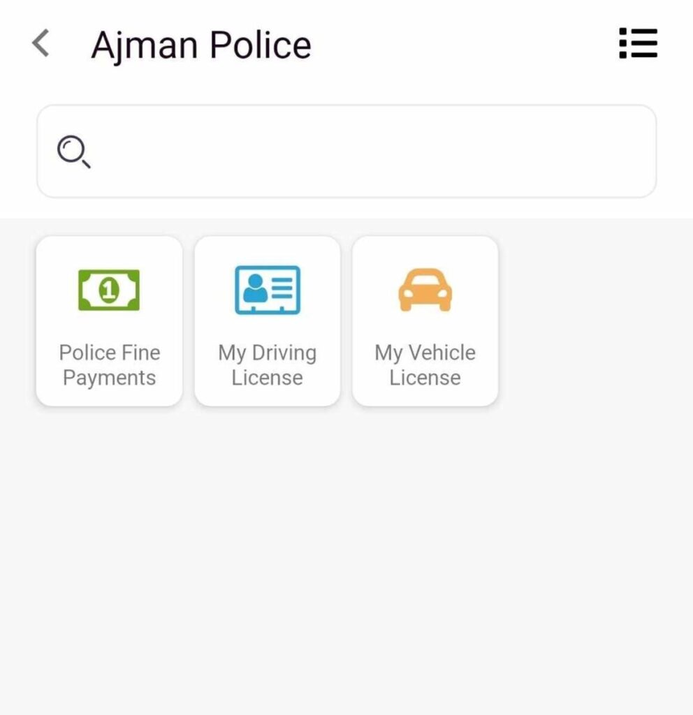 Trafik cezalarınızı Ajman’da İçişleri Bakanlığı uygulaması üzerinden de ödeyebilirsiniz. Sadece aşağıdakileri yapın:BAE Geçişinizi kullanarak uygulamaya giriş yapın, ‘Trafik Cezaları Ödemesine’ dokunun