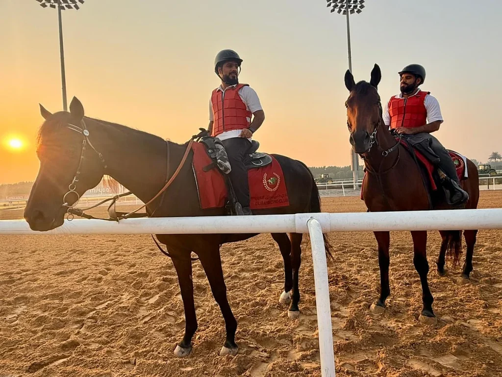 (DRC) Kulüp sondaj ve Yarış Pisti için yola çıktıklarında, gidip onların işini yapmaya hazır olduklarından emin olmak için şampiyon atlar ve safkan klima titiz işlemini başlatmak Yarış Dubai Şafak, jokeyler ve eğitmenler sonu.