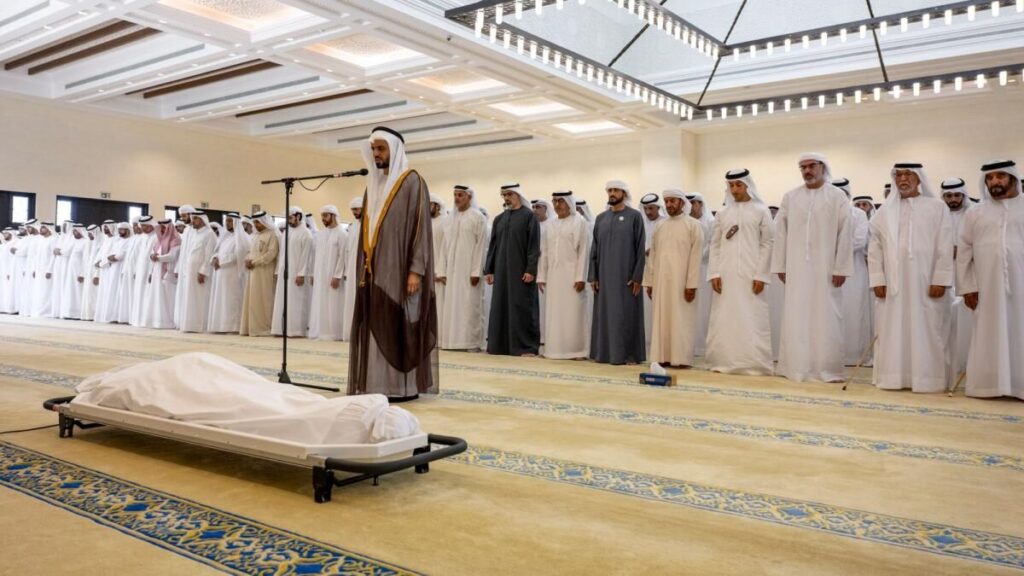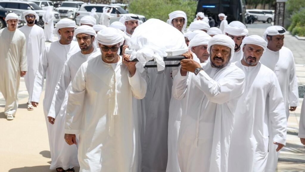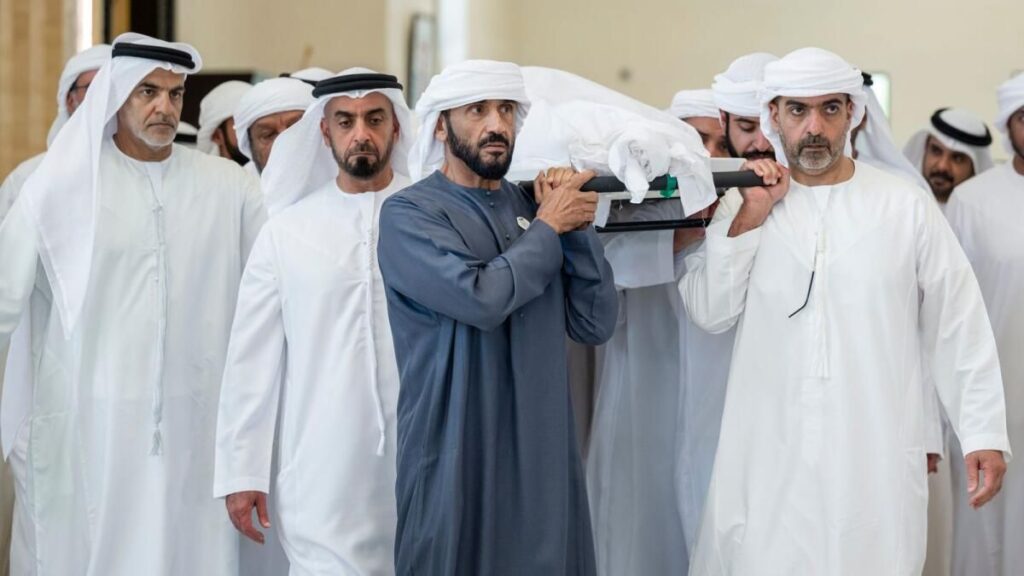 Cumhurbaşkanı Şeyh Muhammed’in ofisi, Şeyh Hazza bin Sultan bin Zayed El Nahyan’ın Perşembe günü vefat ettiğini açıkladı.Cumhurbaşkanlığı Ofisi samimi başsağlığı ve sempatisini dile getirdi.Kraliyet ailesi üyeleri, üst düzey yetkililer ve yas tutan bir kalabalık Perşembe öğleden sonra Şeyh Hazza için Abu Dabi’deki Şeyh Sultan bin Zayed Birinci Camisi’nde cenaze namazı kıldı.