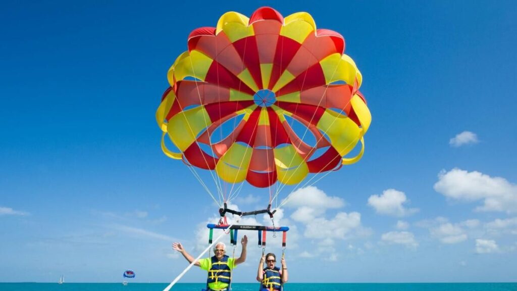 Dubai’nin uçurtma sörfü tutkusunu tatmak için, tüm beceri seviyelerindeki uçurtma sörfçüleri için popüler bir yer olan Kite Beach’i ziyaret edin. Kite Beach’te dersler ve ekipman kiralama hizmeti sunan Dukite gibi olanaklar bulacaksınız. Uçurtma sörfünde katılımcılar, paraşütü andıran bir uçurtmaya bağlı bir sapa tutunarak hızlarını ve yönlerini kontrol etmek için kullanırlar – size harika bir tam vücut antrenmanı da veren canlandırıcı bir deneyim.Parasailing
