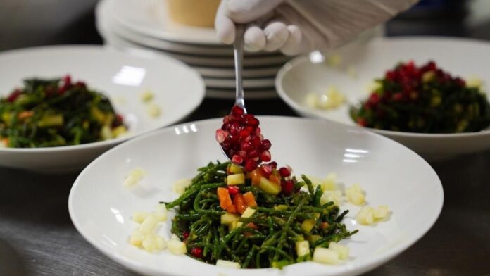 Şeflerden ilham almalarını ve Salicornia kullanımını genişletmelerini istedik” dedi. “Garnitür olarak sahip olmak güzel bir şey ama aynı zamanda onu bir bileşen olarak kullanmalarını istiyoruz. Bunu kullanarak hangi kombinasyonların mümkün olduğunu görmelerini istiyoruz.”Ona göre şefleri onu kullanmaya teşvik etmenin geniş kapsamlı bir etkisi olabilir. “Şeflerin dönüşümsel yeteneklerine inanıyorum” dedi. “Daha fazla insana yemeklerinde halofit kullanmaları için ilham verecek etkiye sahipler. Daha fazla insan kullanırsa, çiftçiler onu yetiştirmeye başlayacaktır. Tuzlu su oranı yüksek suda yetişir. Yeni bir içerik ve yeni bir iş kaynağıdır.”Halofitler, yüksek tuzluluk ve su kıtlığı da dahil olmak üzere zorlu çevre koşullarına dayanmaya çok uygun, iklime dayanıklı mahsuller vaat ediyor ve bu da onları BAE’de gıda güvenliğini güçlendirmek için ideal adaylar haline getiriyor.