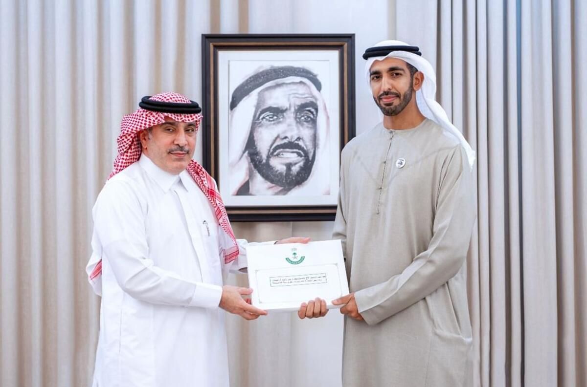 Davet, Suudi Arabistan’ın BAE Büyükelçisi Sultan Al Luwaihan Al Anqari tarafından Devlet Bakanı Şeyh Shakhboot Nahyan Al Nahyan’a teslim edildi.