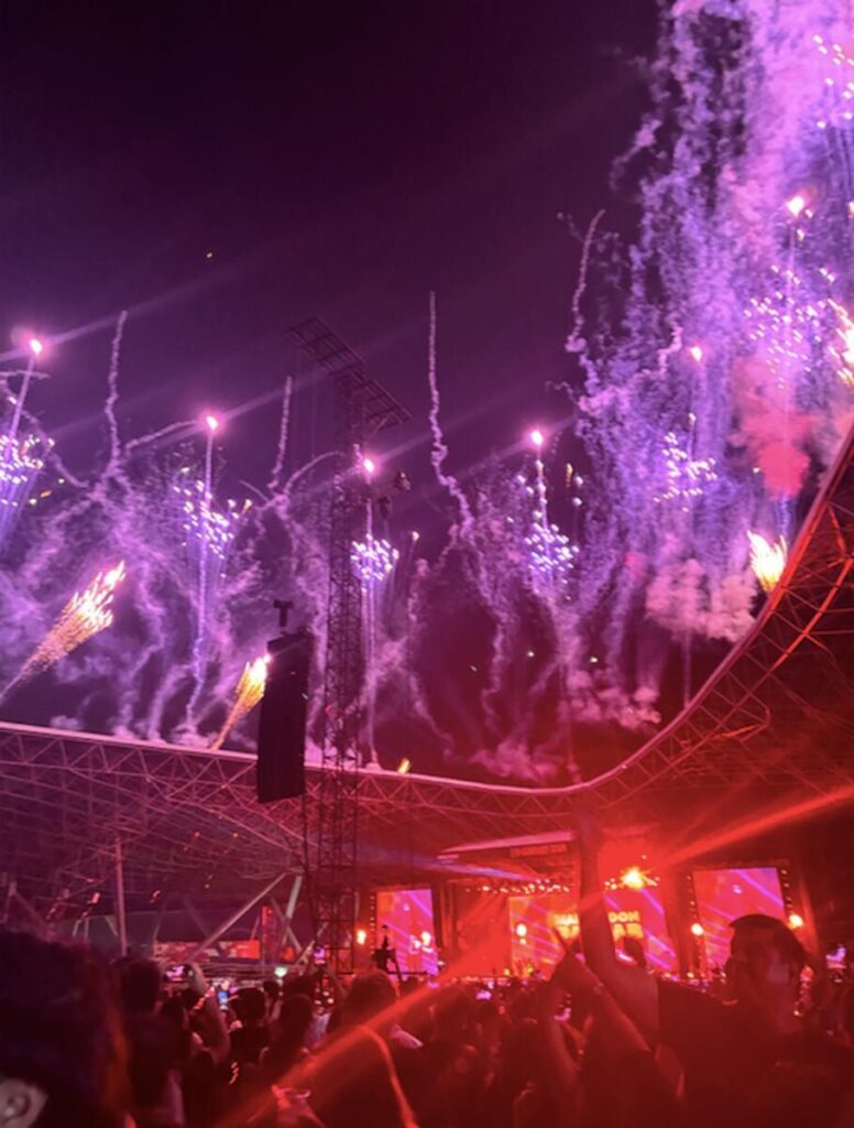 Yıldız sanatçı gece boyunca çekicilik yaydı ve hatta seyircilere güneş gözlüklerini, eldivenini ve ceketini verdi.Havai fişekler parkı aydınlatırken ‘Chamkila’ filminden Main hoon Punjab’ı (Ben Pencap’ım) söyleyerek geceyi sonlandırdı.