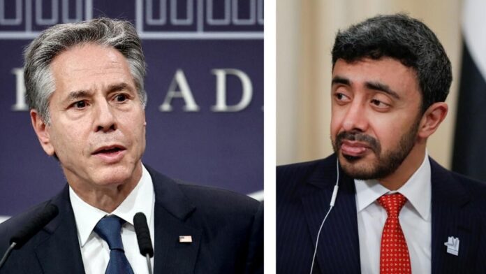 Başbakan Yardımcısı ve Dışişleri Bakanı Şeyh Abdullah bin Zayed El Nahyan, ABD Dışişleri Bakanı Antony Blinken ile karşılıklı endişe verici bölgesel konuları görüşmek üzere telefonla konuştu.