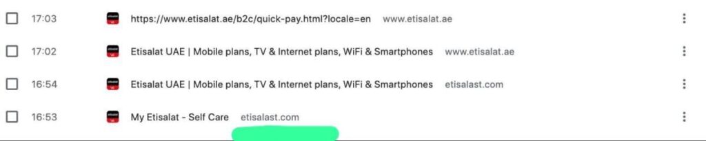 Dubai’de ikamet eden U.B., yakın arkadaşından satın aldığı e-sım’i şarj etmesini isteyen bir telefon aldığında; Bunu yapmak için hemen internete girdi. Ne yazık ki onun için BAE merkezli telekom operatörü Etisalat için e & tarafından karşılaştığı ilk bağlantı sahteydi. Telekom sağlayıcısının adını taşıyan, ancak fazladan bir harf içeren bir web sitesiydi. ( Aşağıdaki fotoğrafa bakın)