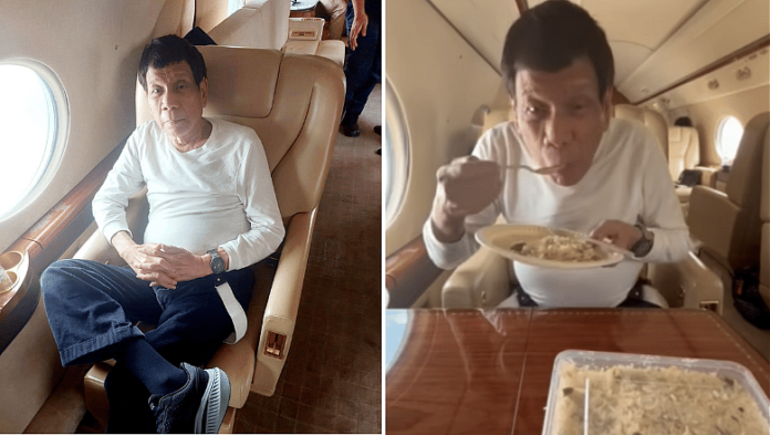 Duterte’yi taşıyan Gulfstream G550 jeti, Hong Kong’dan Ninoy Aquino Uluslararası Havaalanı’na (NAIA) varışta polis nezaretine alındığı gün olan 11 Mart Salı günü saat 7civarında (BAE saati) Filipinler’den ayrıldı.