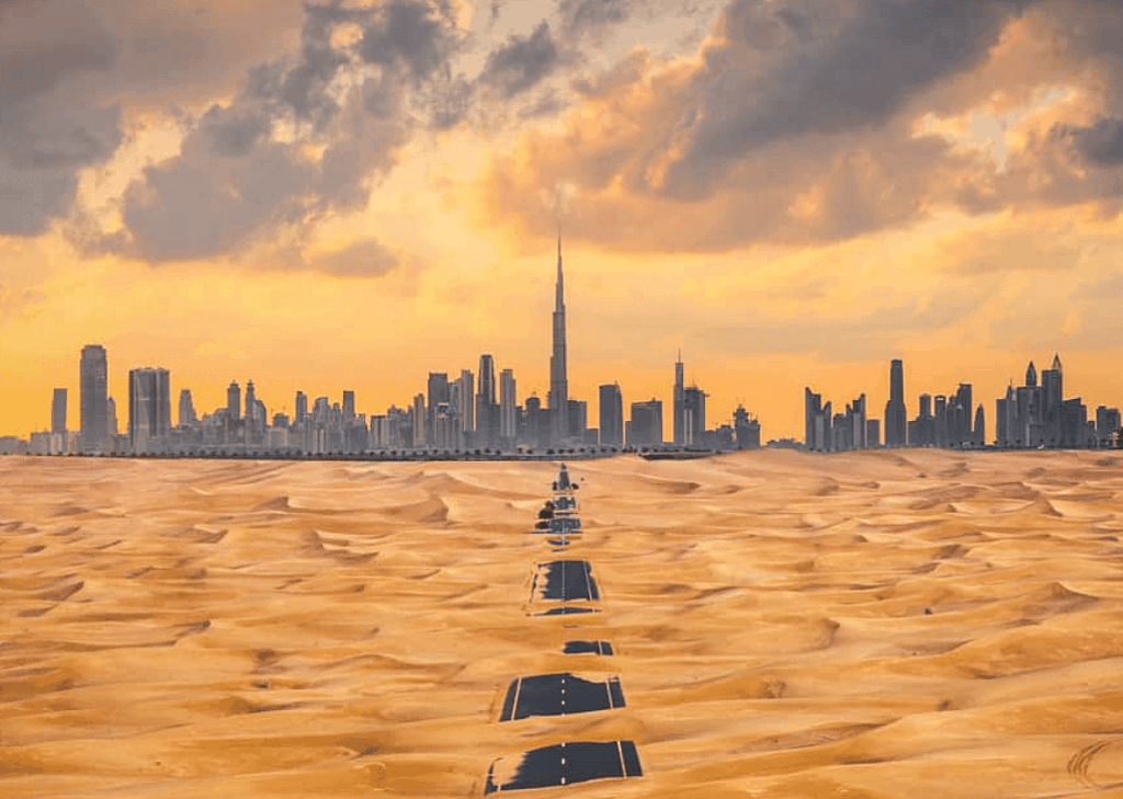 BAE’nin ıssız bir ülke olması nedeniyle, ülke içinde yapılacak bir yolculuğun sizi her iki tarafında kum tepeleri olan birçok yola götürmesi şaşırtıcı değil. Ancak bu yolda çöle gitmiyorsunuz – çöl size geliyor.