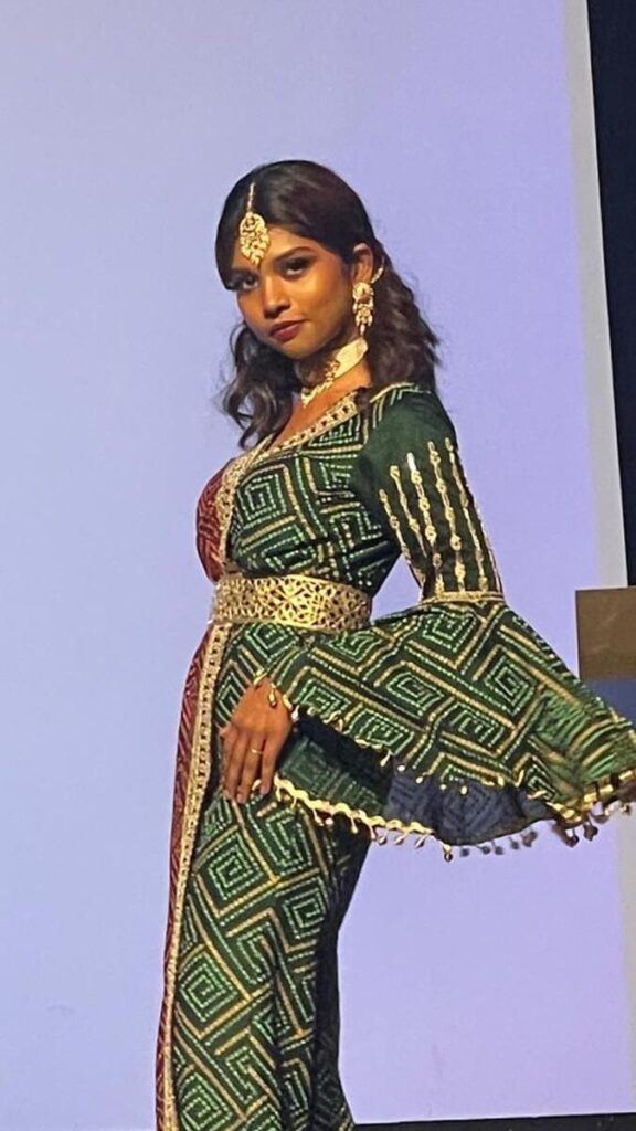 21 yaşındaki Tejasvi Sandeep Gurjar, BAE’de büyüdü ve okul ve üniversite eğitimini burada tamamlayarak ülke hakkında derin bir anlayışa sahip.Çocukluk tutkusunun ardından, tıpkı Ploy gibi, Tejasvi de girişimci olmayı ve bir gün giyim hattını açmayı hedefliyor.Amity Üniversitesi Dubai Moda Tasarımı Lisans derecesi mezunu, “Moda öğrencilerinin her birinin herhangi bir tema veya konseptle bir koleksiyon tasarlaması gereken bir etkinlik olan bir mezuniyet gösterimiz oldu. Bu yüzden Hint-batı temasını seçtim. Çok trend olduğunu görüyorum. Giysilere odaklandık.“