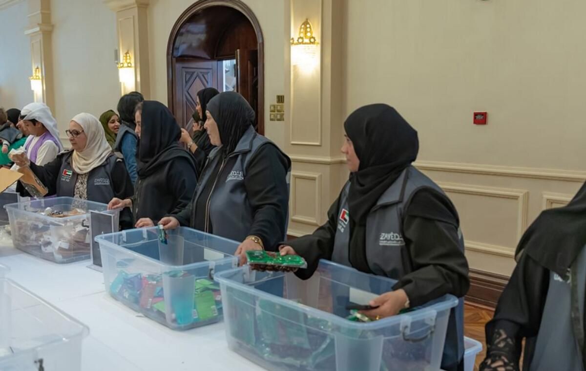 Lübnanlı kadınların acılarını hafifletmek amacıyla BAE gönüllüleri, Abu Dabi’deki kadın gönüllülerin özverili katılımıyla yardım malzemelerini paketledi.