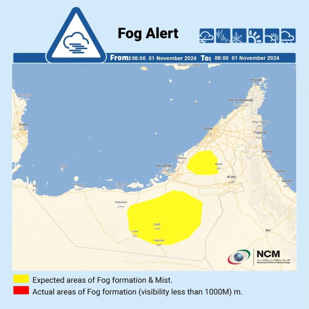 BAE Hava Durumu: Bazı Bölgelerde Yağış Olasılığı; Sis için Sarı Alarm Verildi