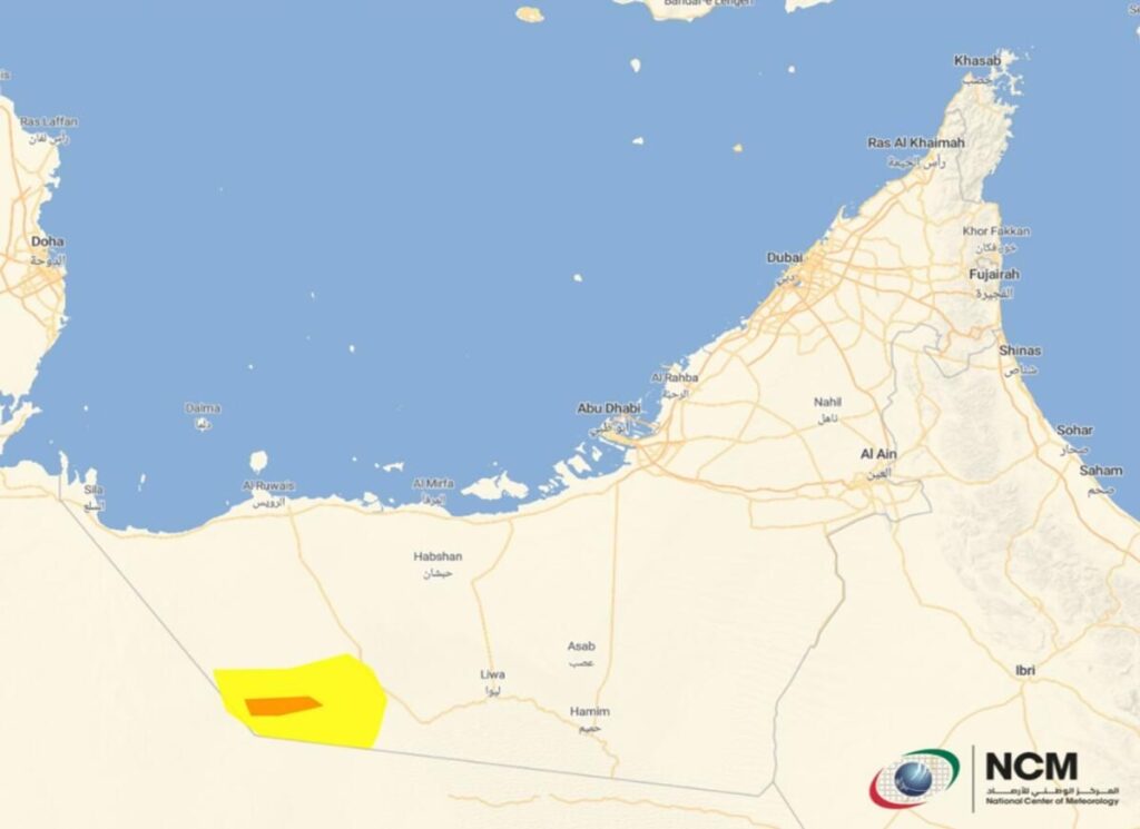 Ulusal Meteoroloji Merkezi’ne (NCM) göre, zaman zaman toz üflemesine neden olan yağış ve taze rüzgarlarla ilişkili konvektif bulut oluşumu için turuncu bir uyarı yayınlandı.Uyarı, 14 Ağustos bugün saat 6.36’dan akşam 8’e kadar yayınlandı.Aşağıdaki haritaya bakın: