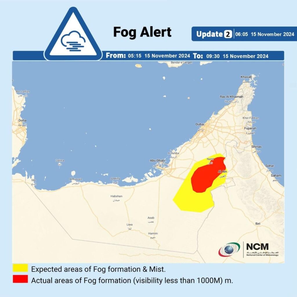 Met ayrıca, ülkede yaşayanların çoğunun zaman zaman parçalı ve bulutlu bir gün bekleyebilmesine rağmen, bugün doğu ve kuzey bölgelerinde yağış olasılığının bulunduğunu belirtti.Meteoroloji bugün ülkenin bazı bölgelerinde bazı yağmurlar öngörürken, bazı iç bölgelerde sis oluşma olasılığı ile gece ve cumartesi sabahı nemli olacak.Merkür dağlarda 16ºc’ye kadar düşebilir ve iç ve bölgelerde 33ºc’ye kadar çıkabilir.Abu Dabi ve Dubai’de sıcaklık 32ºc’ye ulaşacak.Ülkede zaman zaman tazelenen hafif ila orta dereceli rüzgarların esmesi bekleniyor.Basra Körfezi’nde deniz sert ila orta, Umman Denizi’nde ise hafif olacak