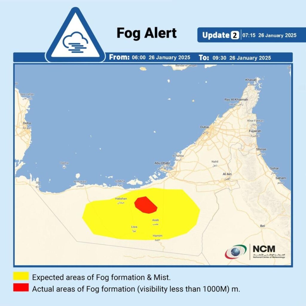 Ülkedeki sıcaklıklar 27ºc’ye kadar çıkabilir. Merkür, Abu Dabi ve Dubai’de 23ºc’ye yükselecek.Ayrıca Abu Dabi’de 13ºC, Dubai’de 16ºC ve iç bölgelerde 8ºC kadar düşük olabilirler.Bazı iç ve kıyı bölgelerinde sis veya sis oluşma olasılığı ile gece ve Pazartesi sabahı nemli olacaktır. Seviyeler Abu Dabi’de yüzde 30 ile 85 arasında ve Dubai’de yüzde 35 ile 85 arasında değişecek.Basra Körfezi ve Umman Denizi’nde deniz koşulları hafif ila orta dereceli olacaktır.