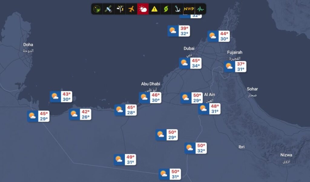 Bu arada merkür, Abu Dabi ve Dubai’de sırasıyla 46ºC ve 45ºc’ye ulaşacak.
