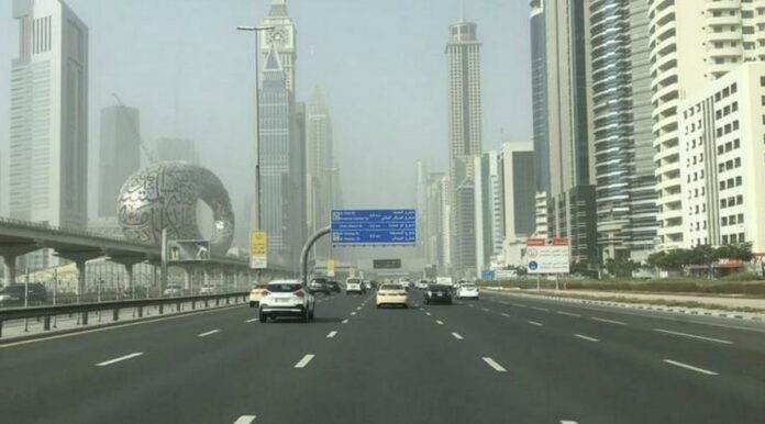 Salı öğleden sonra yayınlanan taze hava uyarısına göre, BAE’nin bazı bölgelerini süpüren kuzeybatı rüzgarları tozu tekmeliyor ve bazı bölgelerde görünürlüğü 3.000 metreden daha azına düşürüyor. Koşulların saat 9’a kadar devam etmesi bekleniyor.