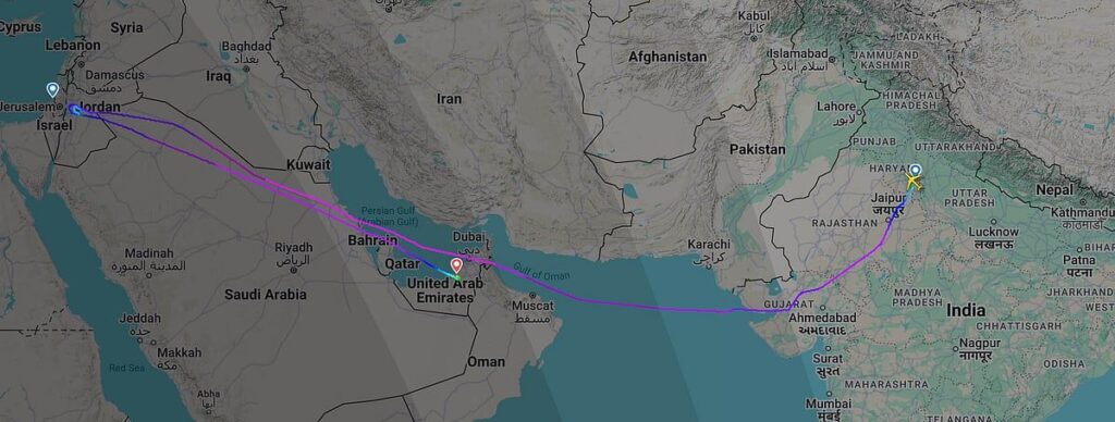 Halihazırda yolda olan uçak, güvenlik nedeniyle Ürdün hava sahasına girdikten sonra geri döndü ve güvenli bir şekilde Abu Dabi’ye indi.