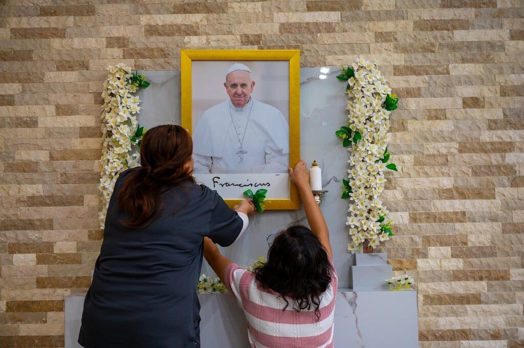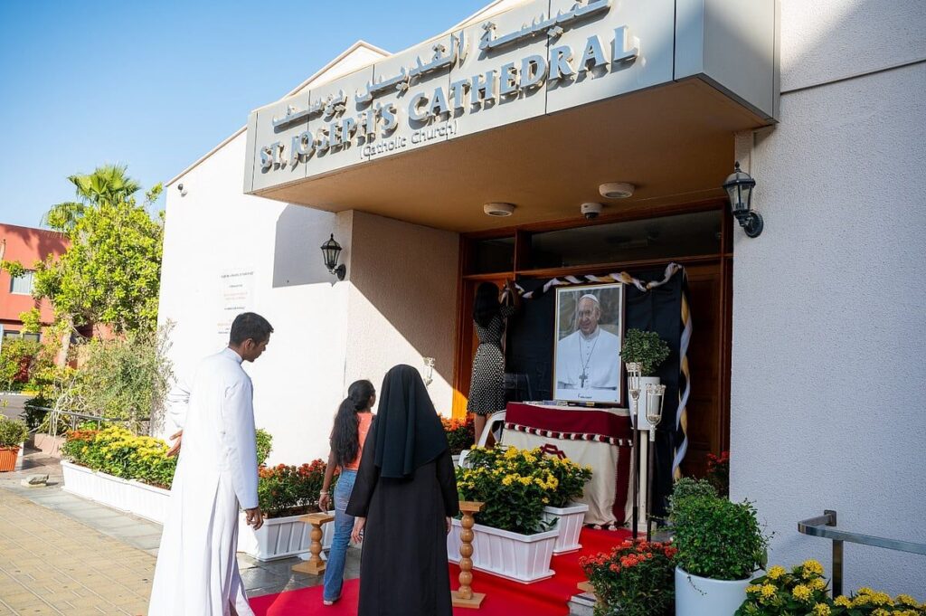 Gönüllüler ve ibadet edenler, bu sabah ölüm haberini duyduktan sonra Papa Francis’e saygı göstermek için Pazartesi öğleden sonra Abu Dabi’deki St Jospeh Kilisesi’ne akın etmeye başladılar.