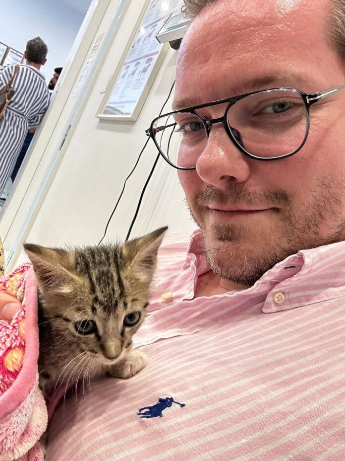 Alman turist Ferdinand doğum gününü kutlamak için bae’deydi ve gece yarısı Abu Dabi’de bazı sokak kedilerini besleyerek özel gününde çalmayı seçti. Etrafta dolaşırken bir yavru kedinin acılı çığlıklarını duydu. Derin kazılmış bir drenaj deliğine açılan bir borunun içine sıkışmıştı.