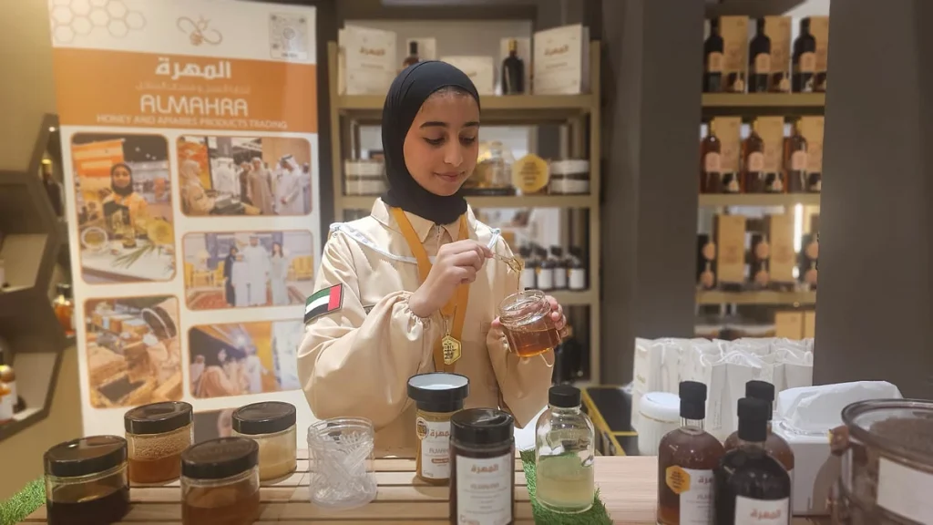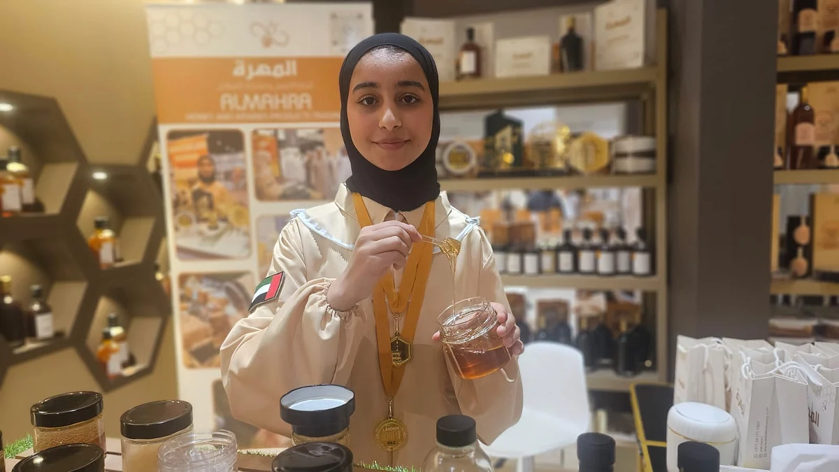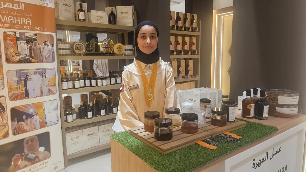 Mahra, Cumartesi günü açılan ve 31 Aralık’a kadar sürecek Olan Hatta Bal Festivali’nin Onuncu Sezonunda bal koleksiyonunu sergileyen genç arıcılar arasında yer alıyor. Hatta Hall’da yerel olarak üretilen çeşitleri tanıtıyor ve her kavanozun arkasındaki süreci ziyaretçilere anlatıyor.