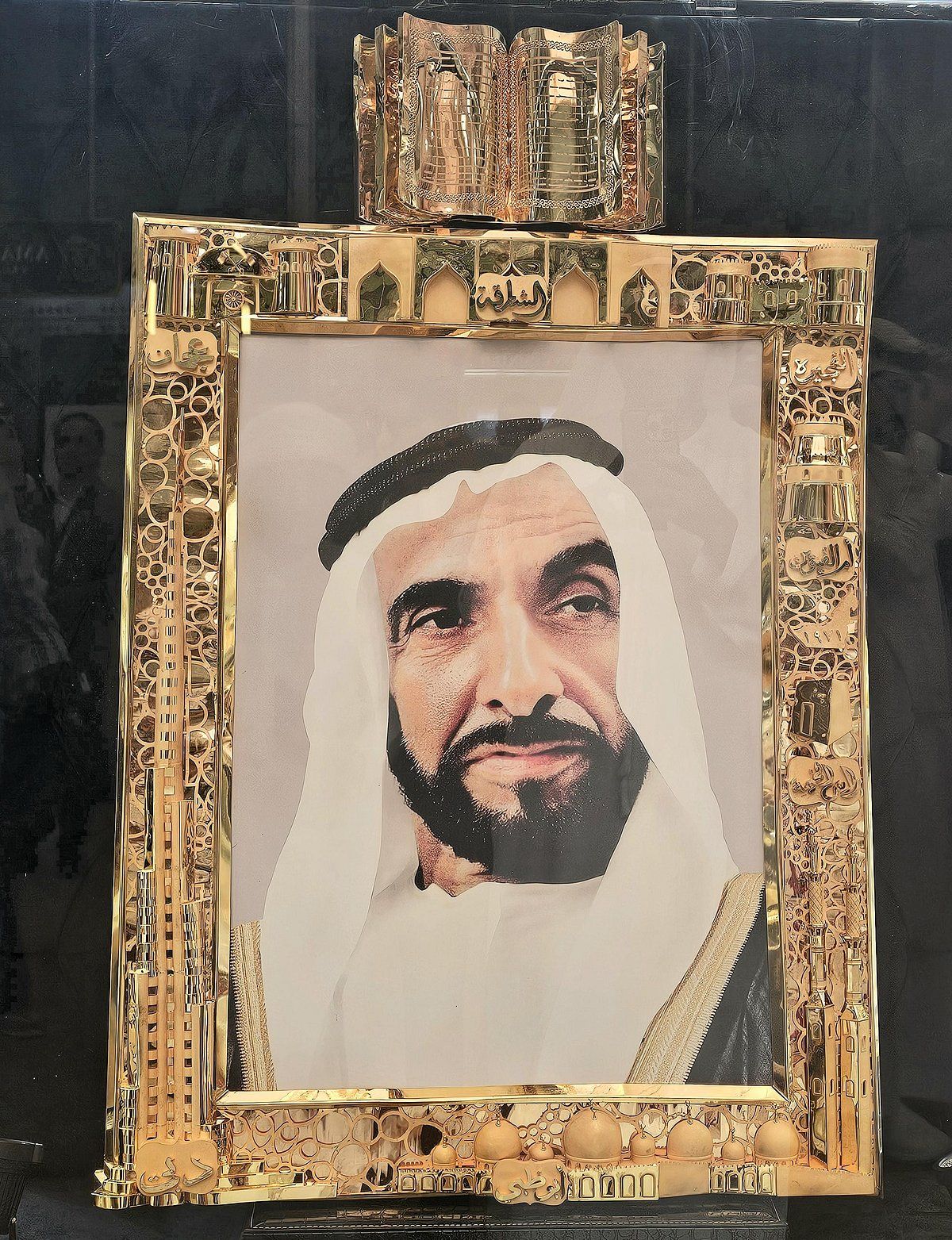 Fikir, Golden Arabia Jewellery ile 1973’ten beri Sharjah merkezli bir aile işletmesi olan Yogesh Jewellery Factory arasındaki işbirliğiydi. Altın çerçeve satılık değil, ulusal gururu, birliği ve birçok sakinin Şeyh Zayed’e duyduğu derin sevgiyi temsil eden içten bir parça.