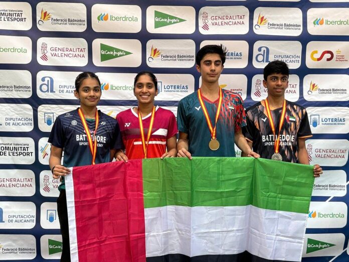 Sansasyonel bir beceri ve kararlılık sergileyen BAE Genç Badminton Takımı, her iki erkekte de altın ve gümüş madalyalarını güvence altına alarak tarih kitaplarına adını yazdırdı ve tek bayanlar Pazar günü Alicante’de sona eren ispanya Uluslararası U19 Şampiyonasında.